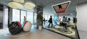 60% of the area is designated as social areas and green landscapes, while a lot of the rooms are designated as commercial offices and shops.